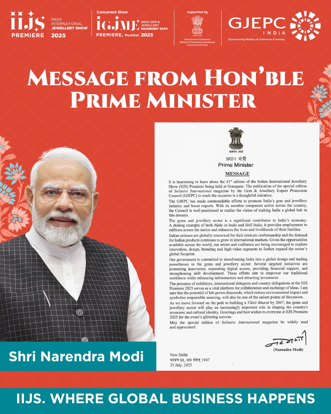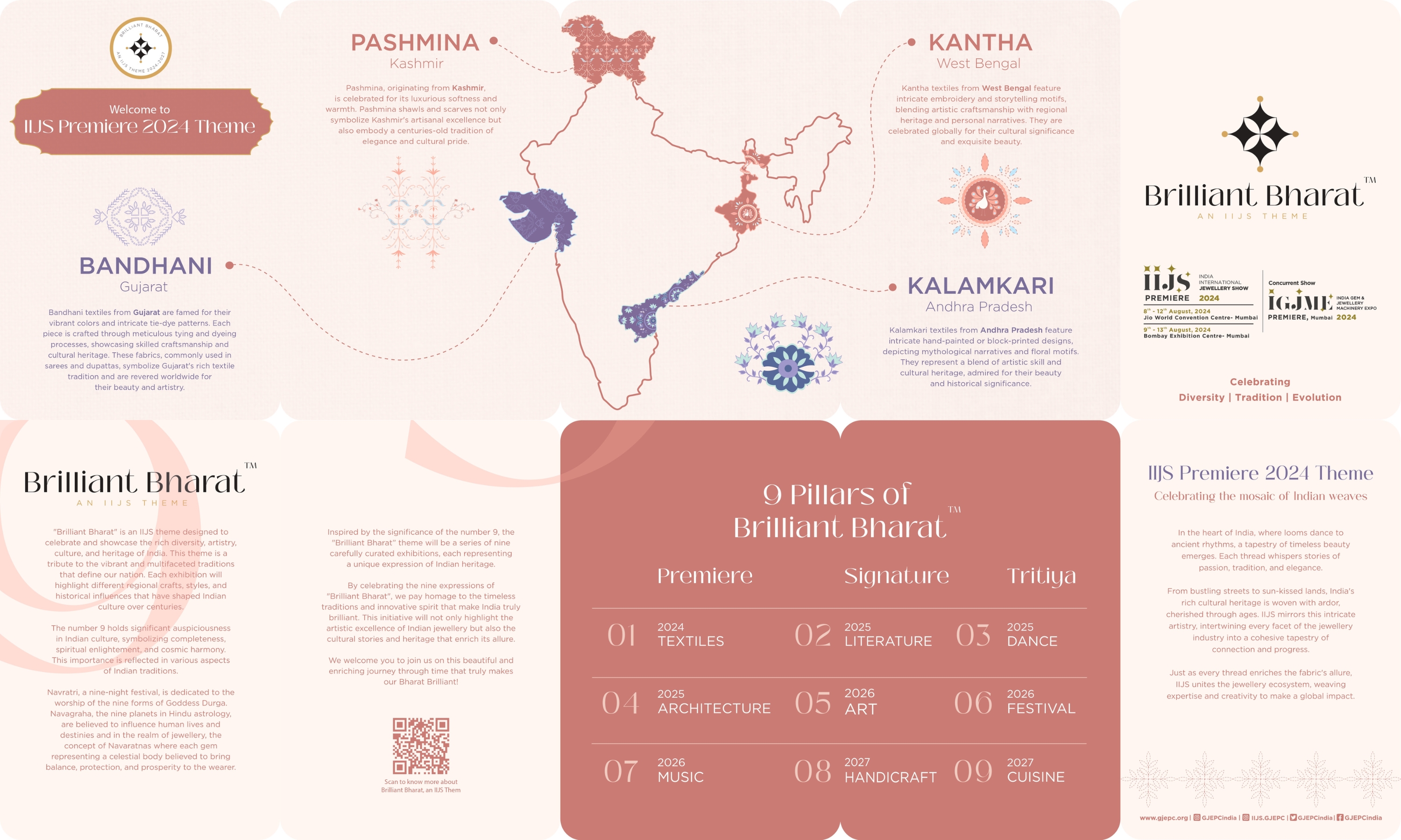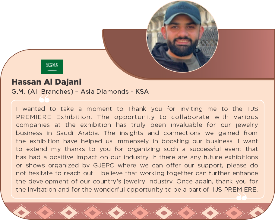 Brilliant Bharat" is a captivating theme for IIJS Shows, celebrating the rich diversity, deep-rooted traditions, and remarkable evolution of India’s gems and jewellery industry. This theme highlights the exquisite craftsmanship that has been passed down through generations, the cultural diversity that influences unique designs, and the industry's dynamic growth and innovation. "Brilliant Bharat" showcases India’s journey in becoming a global leader in the gems and jewellery sector, blending tradition with modernity to create timeless masterpieces.