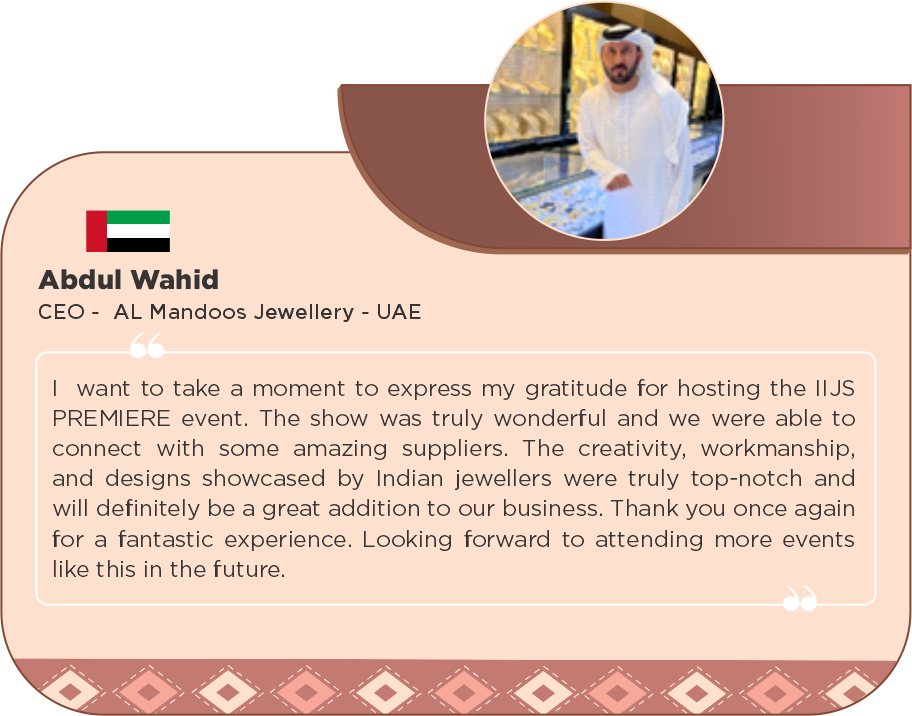 Experience the pinnacle of luxury, innovation, and craftsmanship as we mark four decades of excellence in the industry. Discover exclusive collections, network with global leaders, and be part of this monumental event in the heart of India's jewellery sector.
