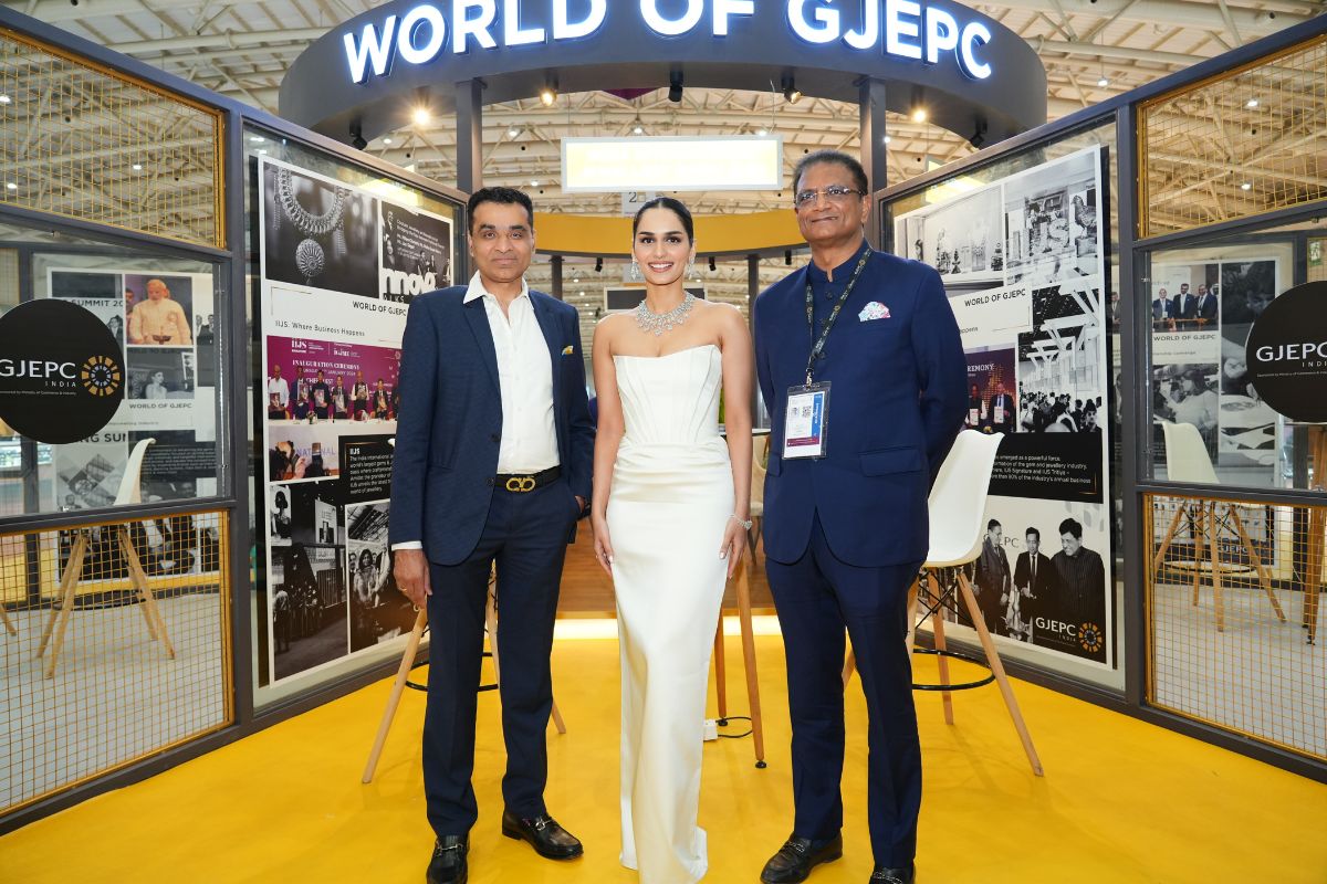 Mr. Nirav Bhansali - Convener, National Exhibitions - GJEPC, Ms. Manushi Chhillar & Mr. Vipul Shah - Chairman, GJEPC