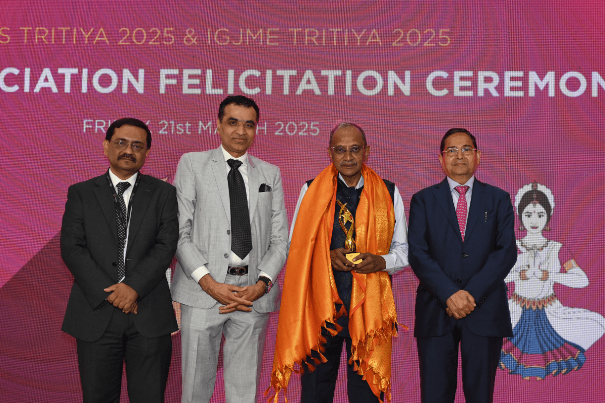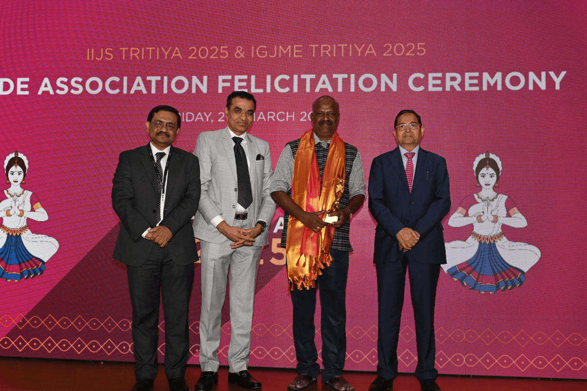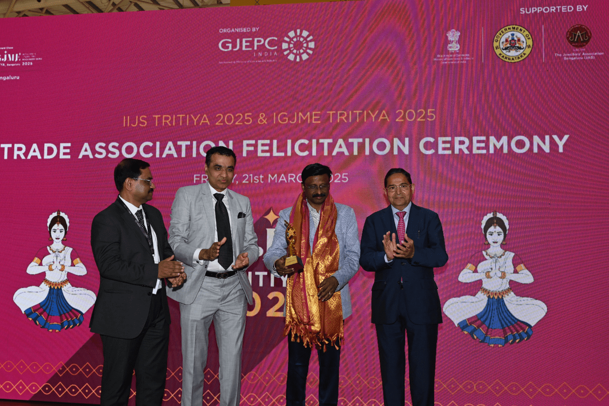 All the dignatories felicitating the IIJS Icon Mr. Shrikant Kari - President, The Karnataka State Jewellers Federation