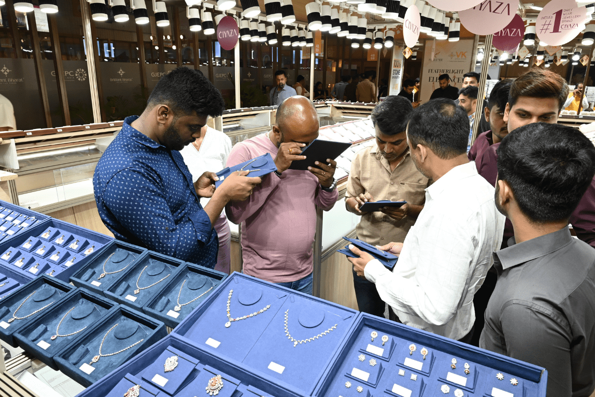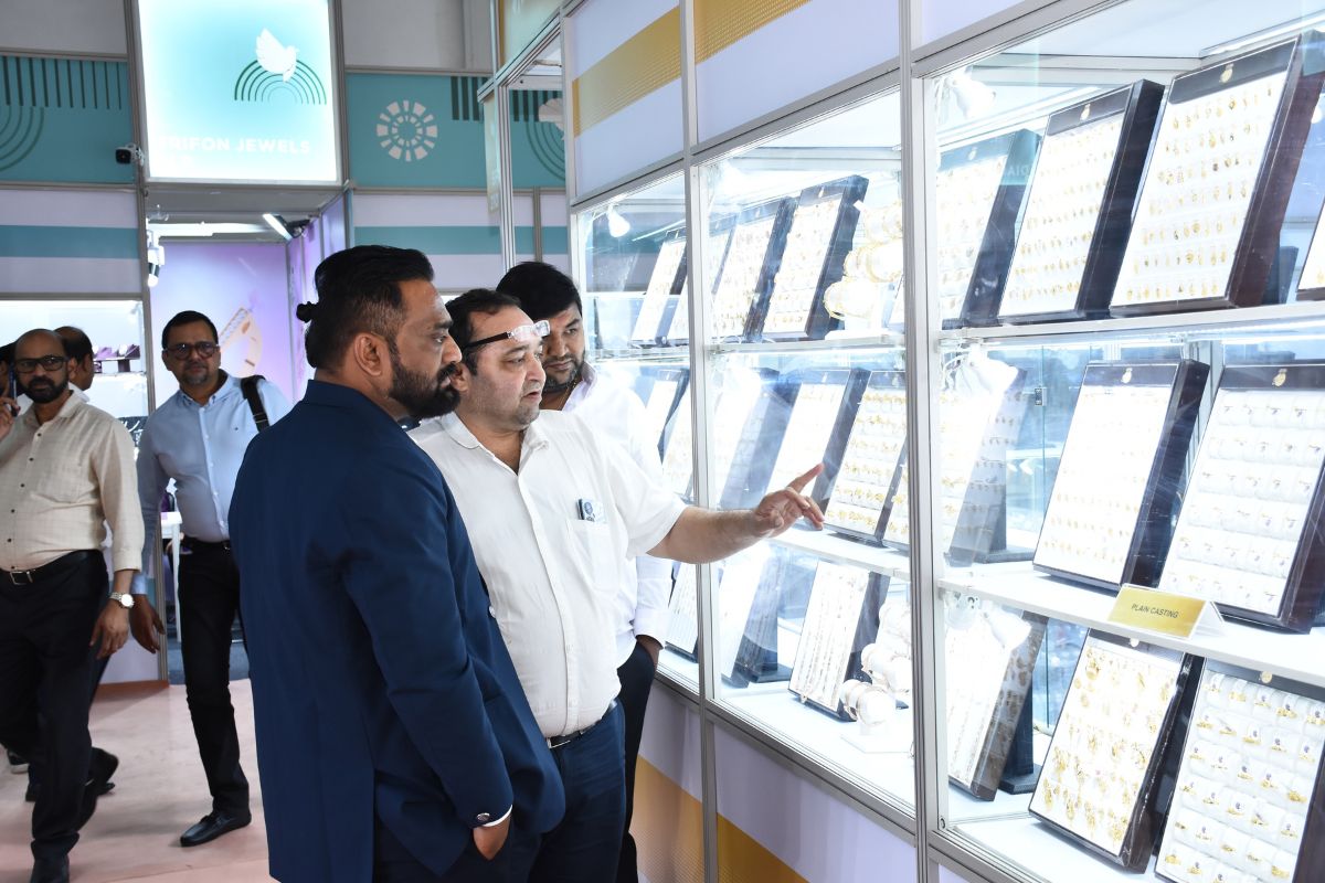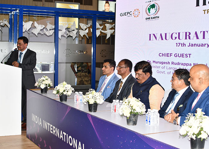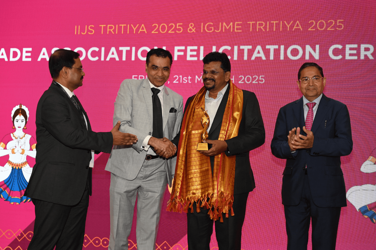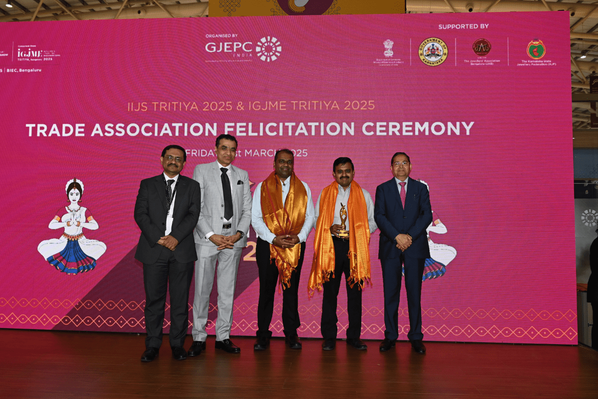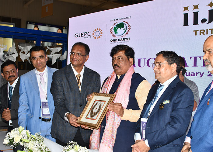 Mr. Sabhyasachi Ray - Executive Director, GJEPC, Mr. Nirav Bhansali - Convener, National Exhibitions - GJEPC, Dr. B. Govindan - Chairman, Bhima Jewellery, ... Dr. Selvakumar, IAS - Principal Secretary to Government, Commerce & Industries Department, Government of Karnataka, Mr. Vipul Shah - Chairman, GJEPC, Mr. Vinod Hayagriv - MD & Director, C. Krishniah Chetty Group, Mr. Kirit Bhansali - Vice Chairman, GJEPC, Dr. Chetan Kumar Mehta - National Vice President, IBJA and President, The Jeweller's Association Bangalore unveiling the Visitor Guide of IIJS Tritiya 2024 Read More
