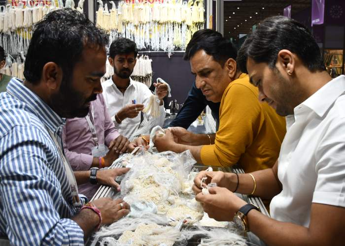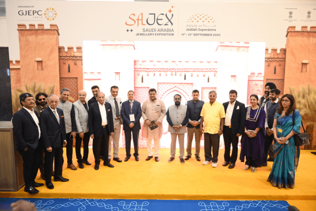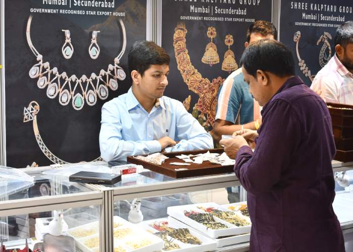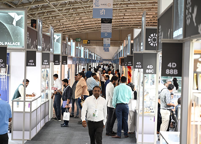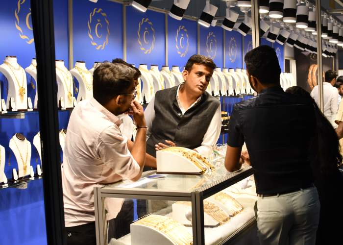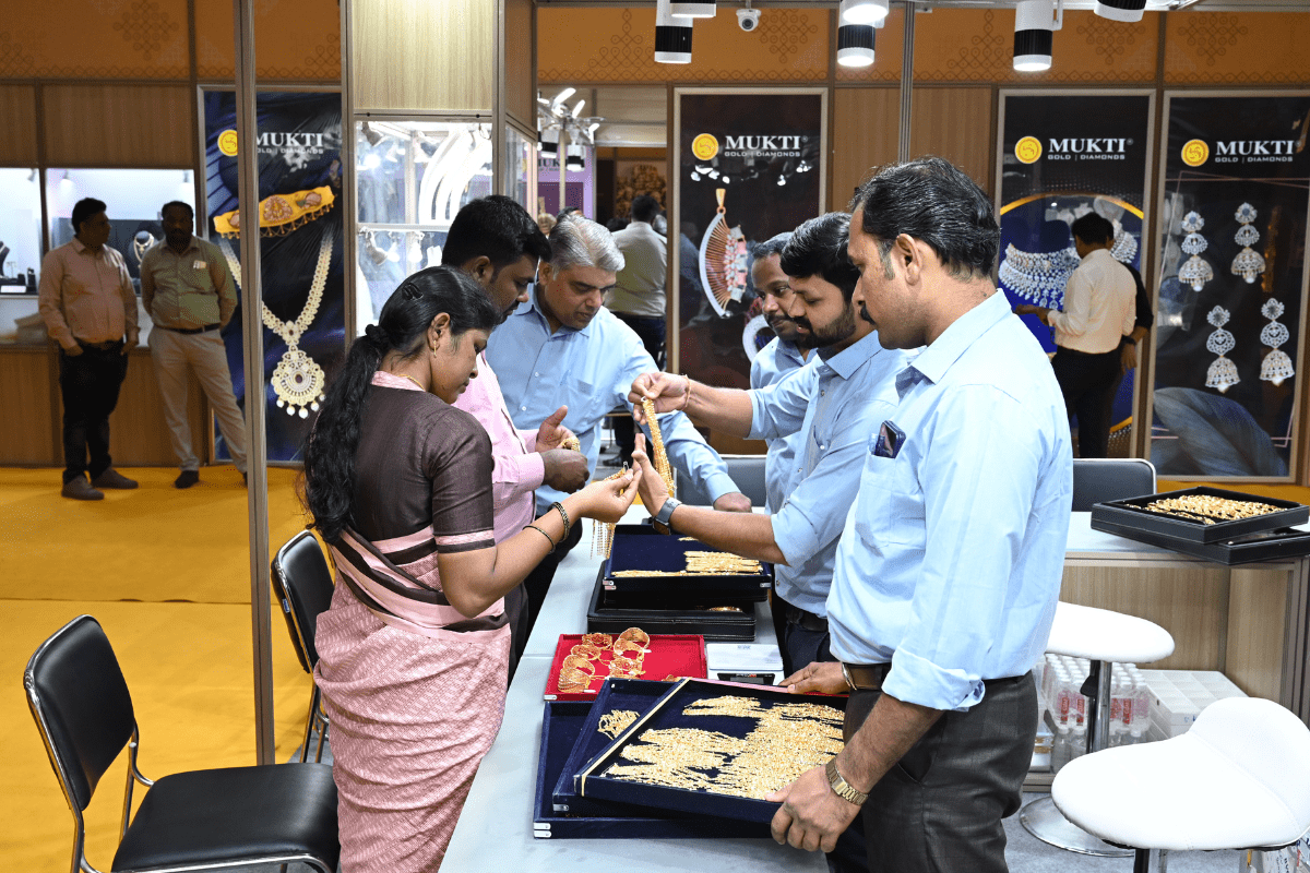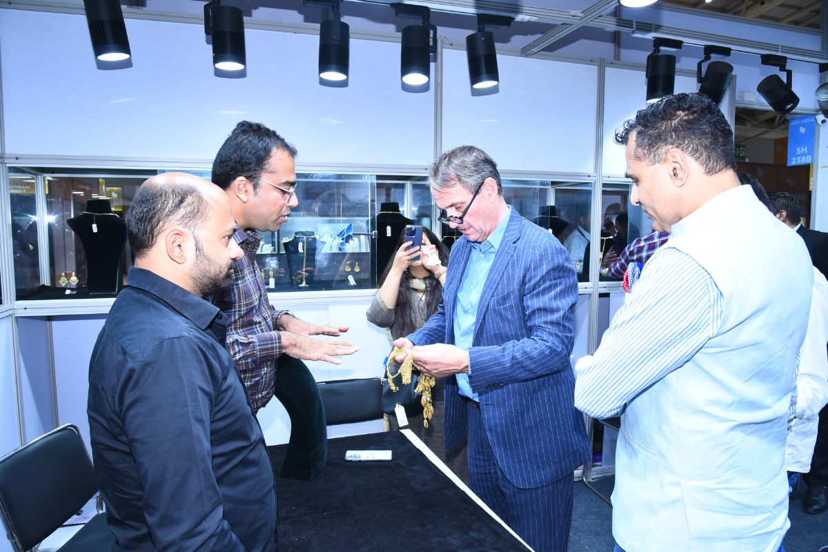 Mr. Sabhyasachi Ray - Executive Director, GJEPC, Mr. Nirav Bhansali - Convener, National Exhibitions - GJEPC, Dr. B. Govindan - Chairman, Bhima Jewellery, ... Dr. Selvakumar, IAS - Principal Secretary to Government, Commerce & Industries Department, Government of Karnataka, Mr. Vipul Shah - Chairman, GJEPC, Mr. Vinod Hayagriv - MD & Director, C. Krishniah Chetty Group, Mr. Kirit Bhansali - Vice Chairman, GJEPC, Dr. Chetan Kumar Mehta - National Vice President, IBJA and President, The Jeweller's Association Bangalore unveiling the Visitor Guide of IIJS Tritiya 2024 Read More
