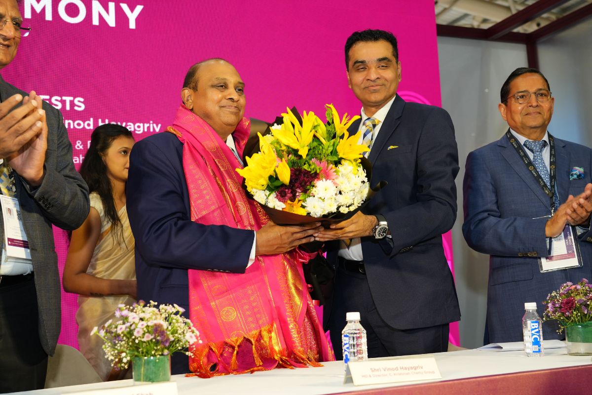 Mr. Nirav Bhansali - Convener, National Exhibitions - GJEPC felicitating Mr. Vinod Hayagriv - MD & Director, C. Krishniah Chetty Group