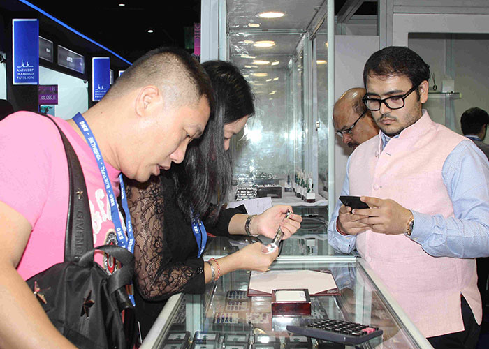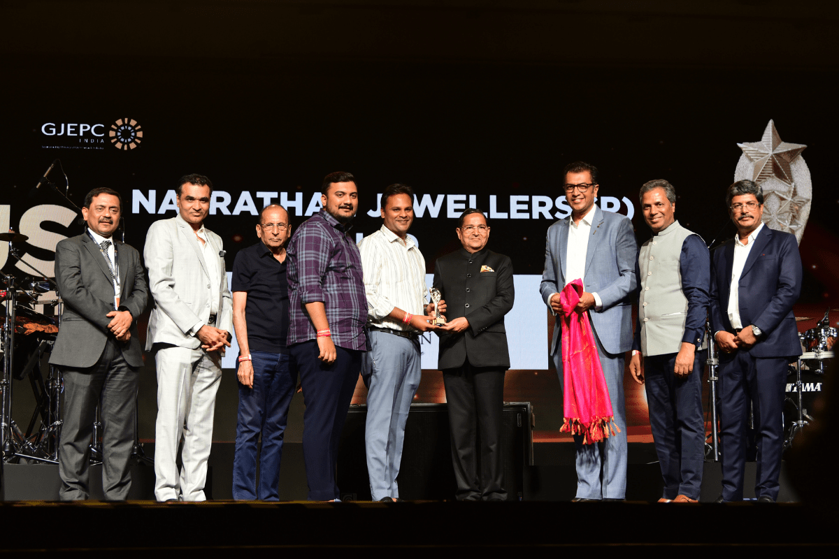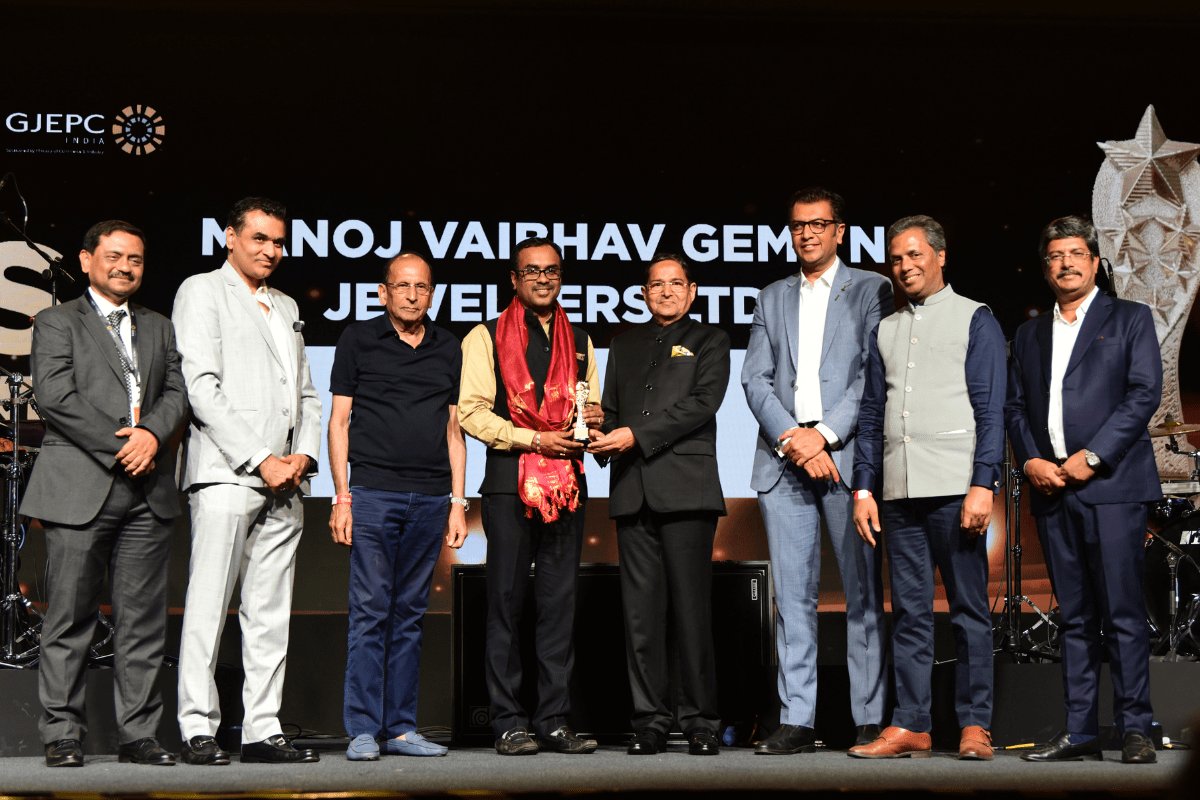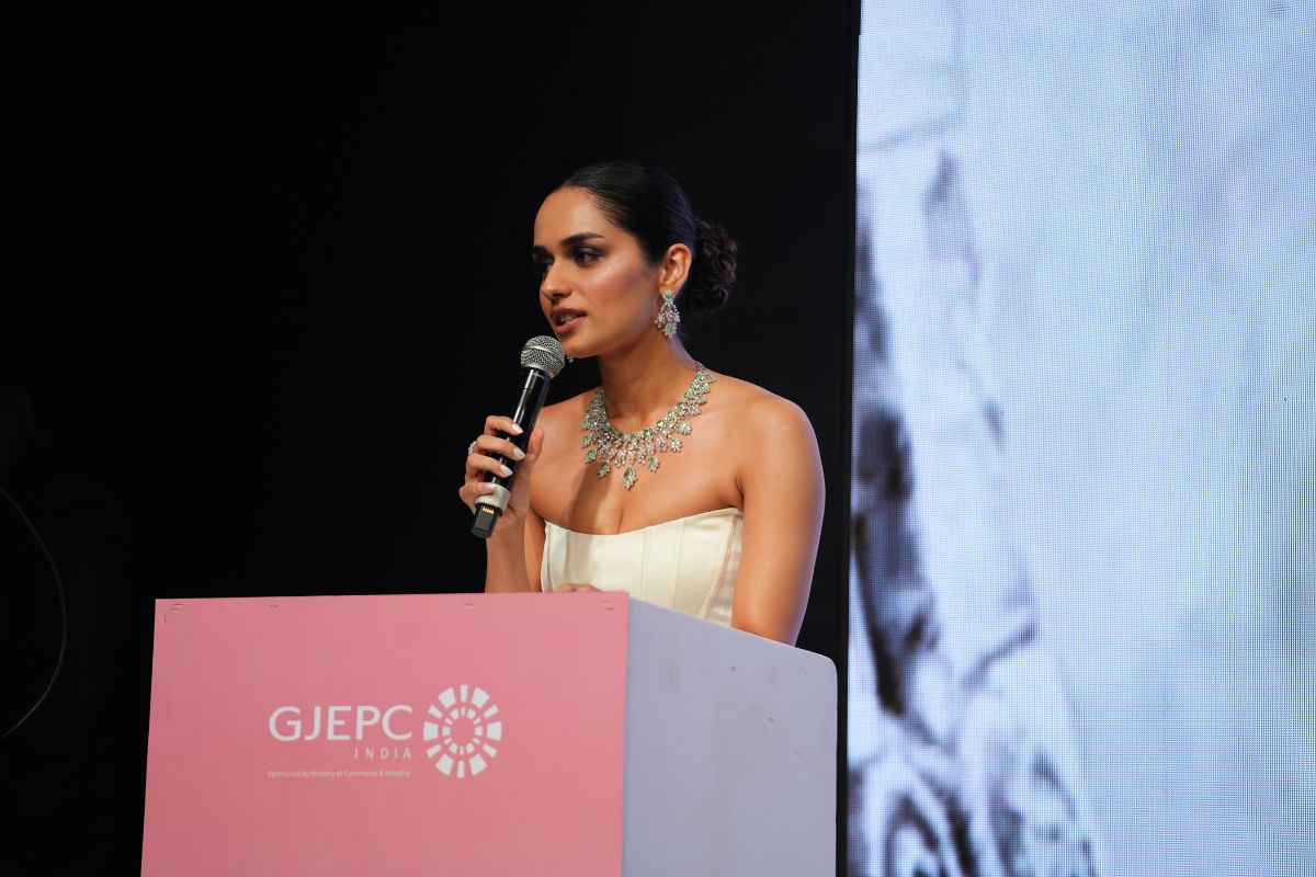 Mr. Nirav Bhansali - Convener, National Exhibitions - GJEPC, Ms. Manushi Chhillar & Mr. Vipul Shah - Chairman, GJEPC