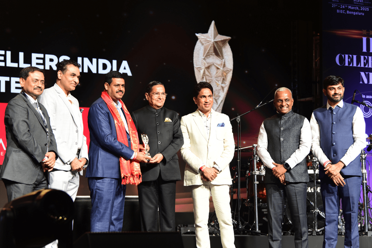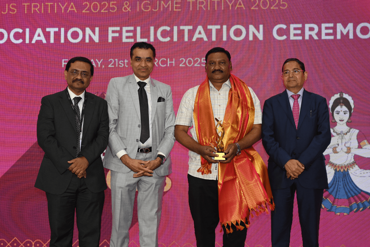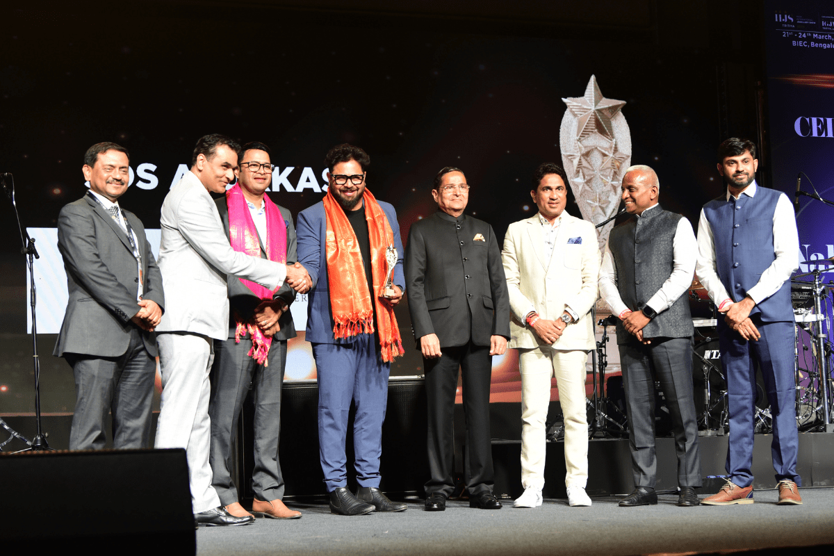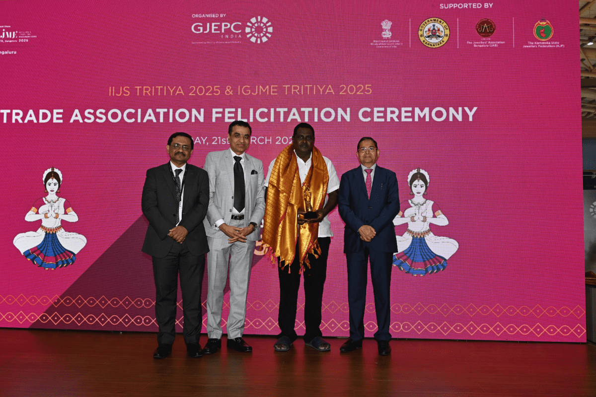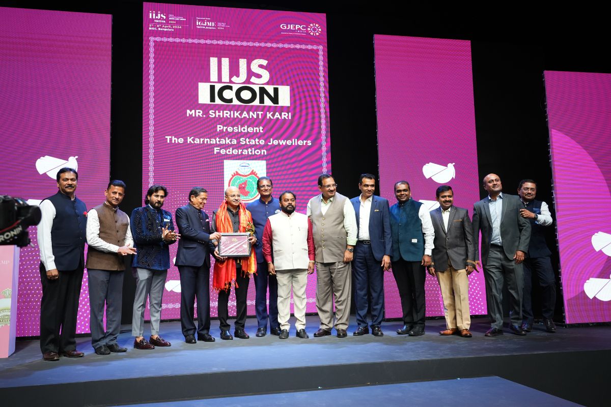 All the dignatories felicitating the IIJS Icon Mr. Shrikant Kari - President, The Karnataka State Jewellers Federation