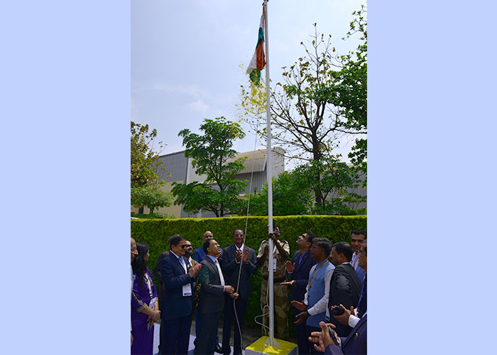 Mr. Nirav Bhansali - Convener, National Exhibitions - GJEPC, Ms. Manushi Chhillar & Mr. Rajesh Kalyanaraman, Executive Director, Kalyan Jewellers