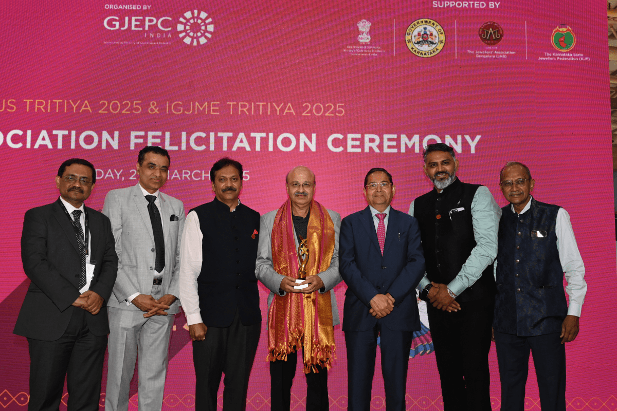 Mr. Sabhyasachi Ray - Executive Director, GJEPC felicitating Dr. Chetan Kumar Mehta - National Vice President, IBJA and President, The Jeweller's Association Bangalore